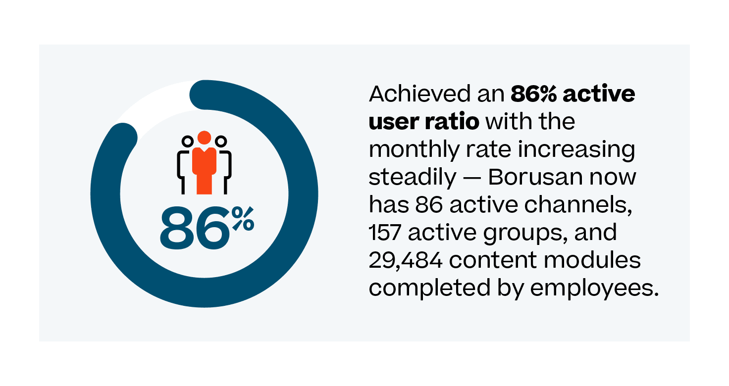La mise en œuvre des solutions Cornerstone a également permis d'améliorer considérablement la collaboration et la satisfaction d'apprendre au sein de Borusan Cat. Ilke Öztürk note que les experts référents de Borusan Cat sont prêts à jouer un rôle plus actif et à contribuer à la mémoire de l'entreprise, et que la rétention des connaissances est en constante augmentation. Cette hausse de l'engagement confirme l'efficacité des solutions Cornerstone quant à la promotion d'une culture de formation continue et de partage des connaissances au sein de Borusan Cat.
