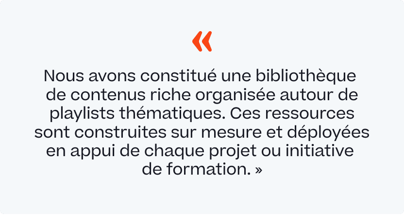 Mérieux est un groupe Lyonnais composé de plusieurs entités engagées dans la santé publique mondiale. Fondée en 2014, Mérieux Université conçoit et anime des programmes de formations en soft skills, management & leadership et compétences transverses. L’université vise à mutualiser ressources et expertises pour créer un socle commun de compétences et de culture, aussi en accompagnant les transformations du groupe sur des thématiques clés comme la RSE ou l’IA. Jusqu’en 2019, la formation était essentiellement présentielle. L’essor de nouveaux formats hybrides et digitaux a initié une transformation en profondeur, que la crise sanitaire est venue intensifier. L’enjeu n’était plus alors de simplement transposer l’existant en ligne, mais d’enrichir les formats, d’adapter les parcours aux nouveaux besoins, et de proposer une offre plus réactive, capable de soutenir les grandes dynamiques de transformation. Ce virage a mis en lumière l’importance de disposer rapidement d’une bibliothèque de contenus digitaux mutualisée, activables à la demande et intégrables aux différents parcours de formation comme Keep Learning, une initiative groupe visant à promouvoir la formation continue.
